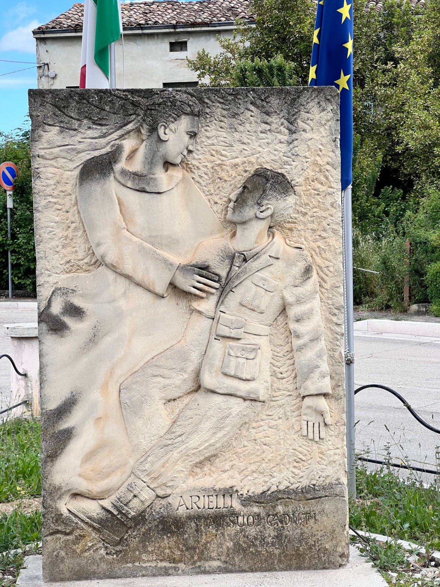 This region has been brutalised by war. And earthquakes and landslides. After a disaster, houses are rebuilt cheaply without a nod to aesthetics. Villages are practical and set out in a linear fashion with a few shops: a butcher, a cafe, a baker. Old style. In Arielli you can still see old buildings pockmarked with shrapnel. There’s a memorial to a massacre when the occupying Nazis massacred a group of men suspected of sabotage.